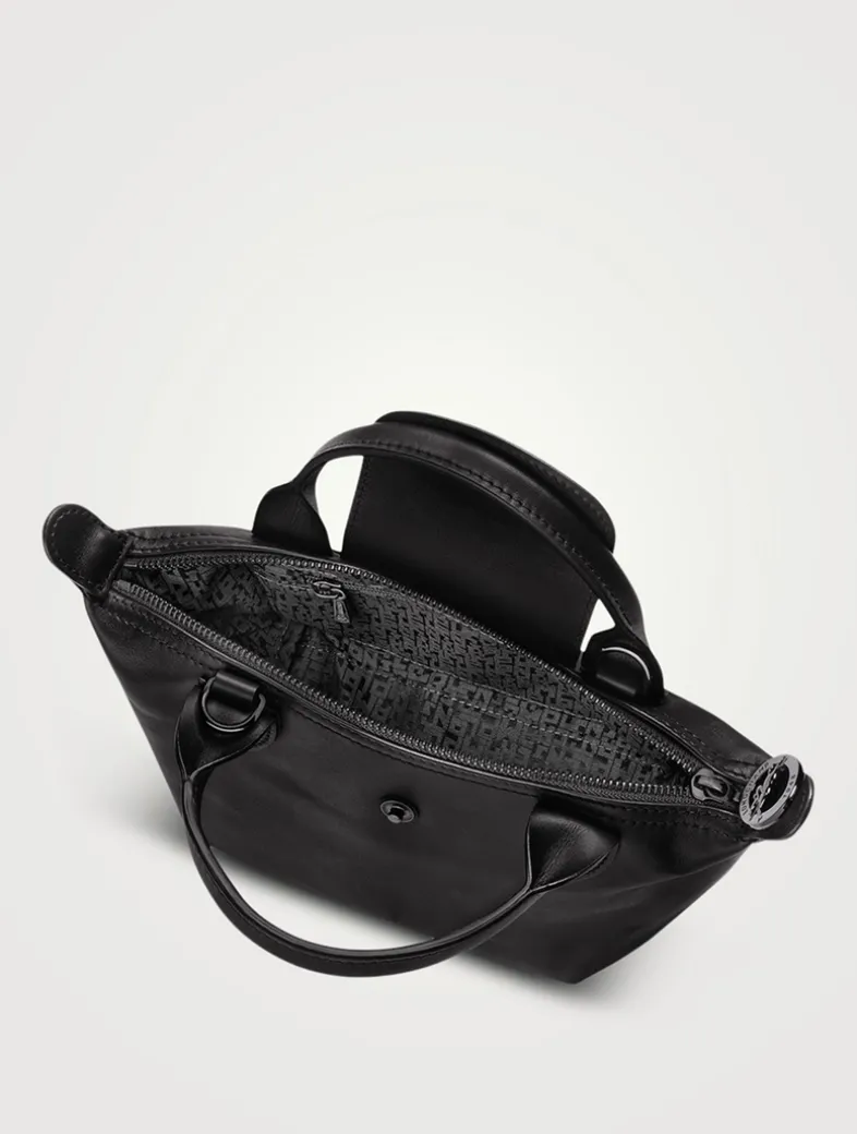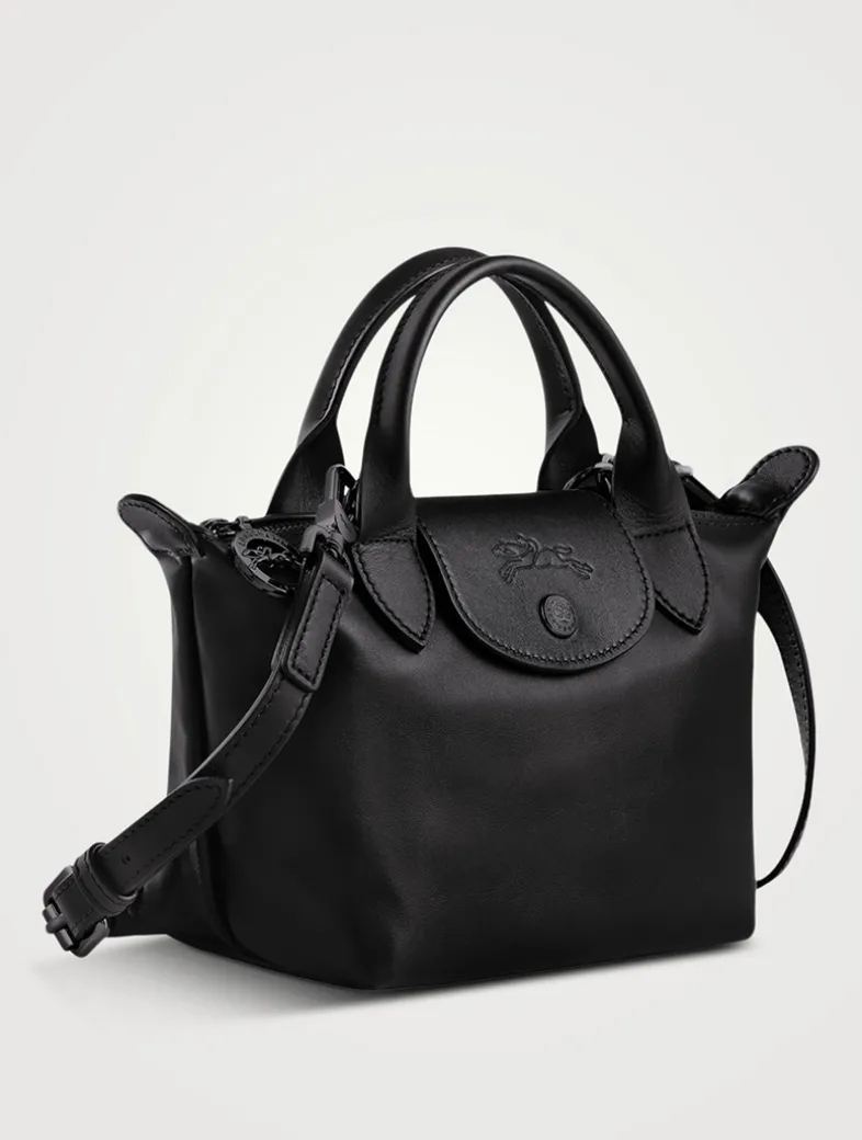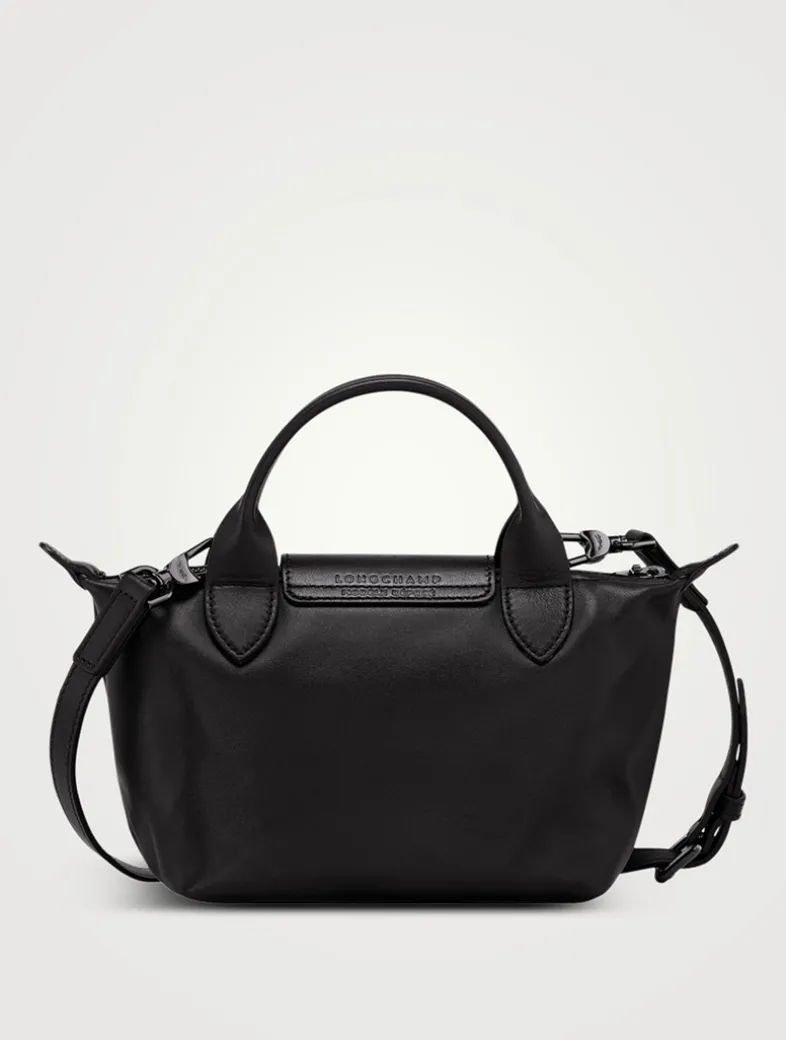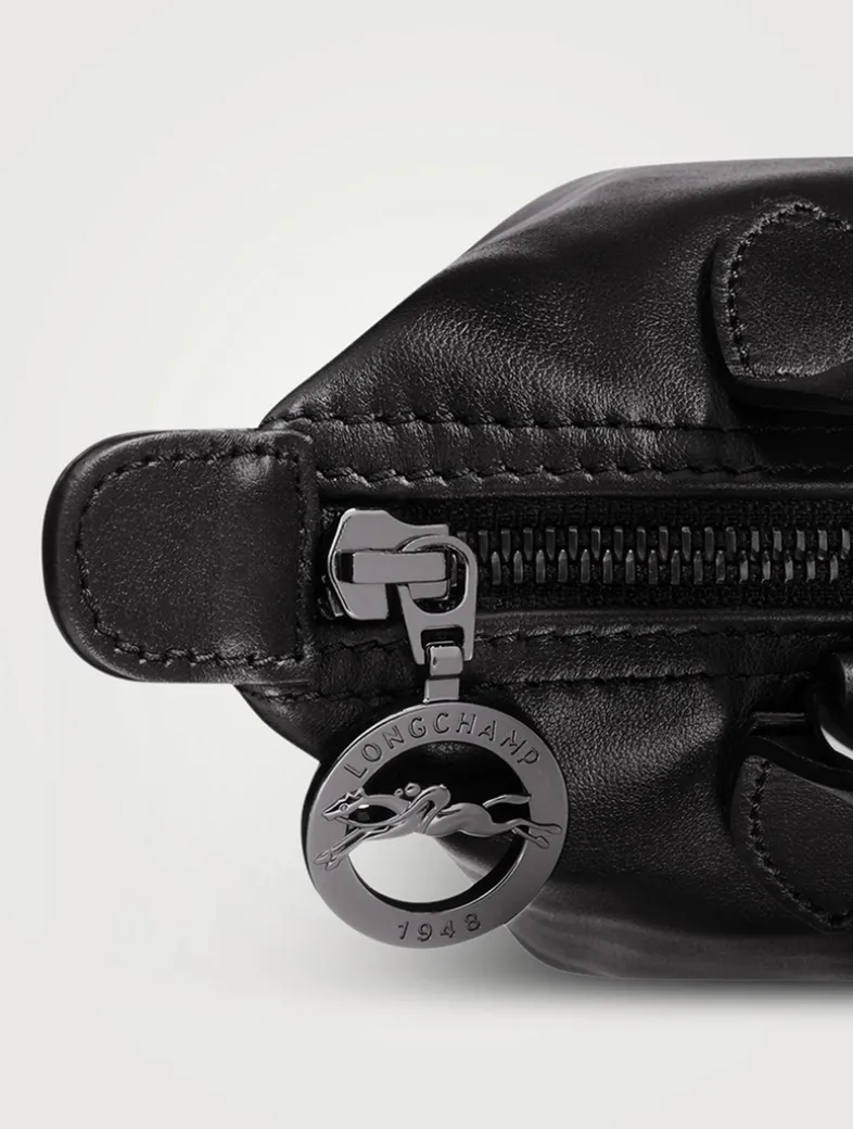 A miniature version of Longchamp’s iconic top handle bag, this leather pouch is the ideal accessory to accompany you on all your evening adventures. Equipped with an adjustable strap, it can be carried either by hand or worn on the shoulder. Its interior features one flat pocket and one zipped pocket. The leather used in this bag may have subtle variations which reflect their vivid nature and reveal the authenticity of their appearance as well as their exceptional quality.