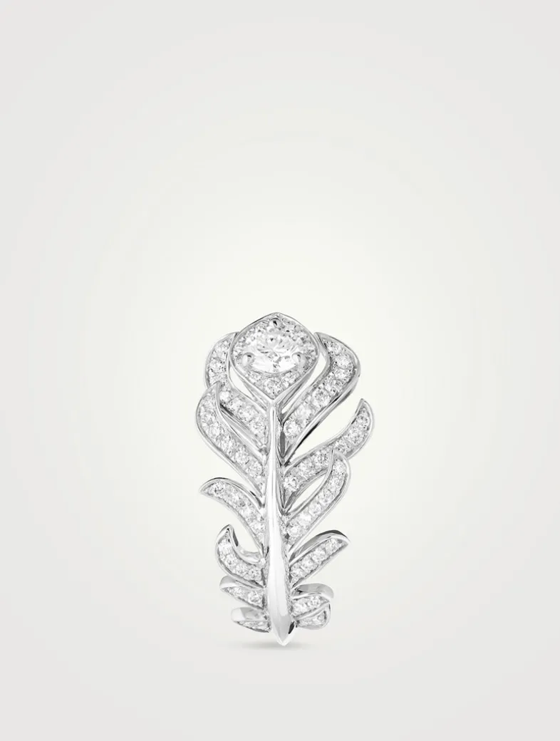 XS Plume De Paon 18K White Gold Ring With Diamonds