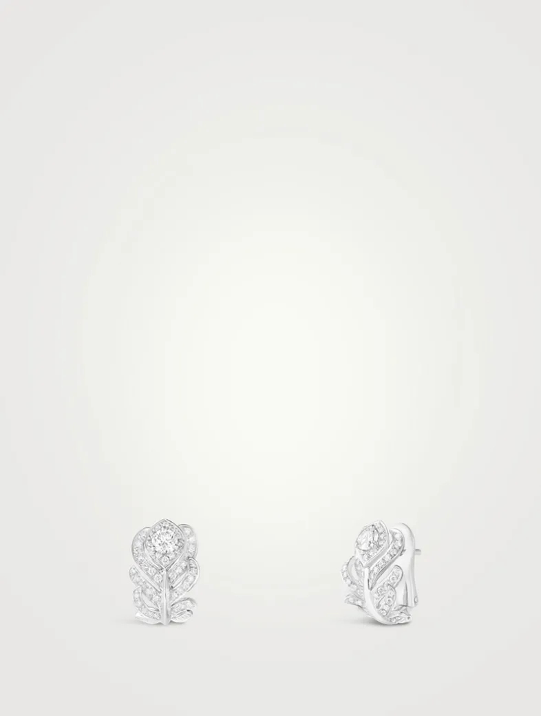 XS Plume De Paon White Gold Clip-On Earrings With Diamonds