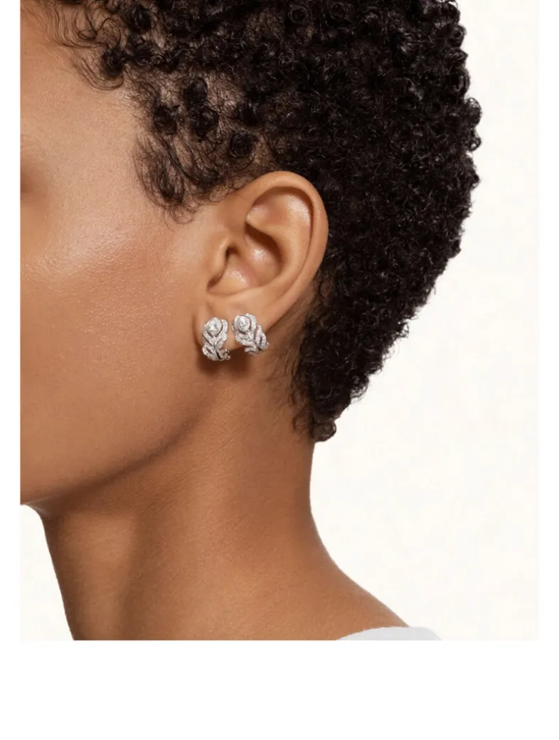 Showcasing the brand’s peacock feather—a true symbol of lightness, these clip-on earrings are covered in pavé diamonds.