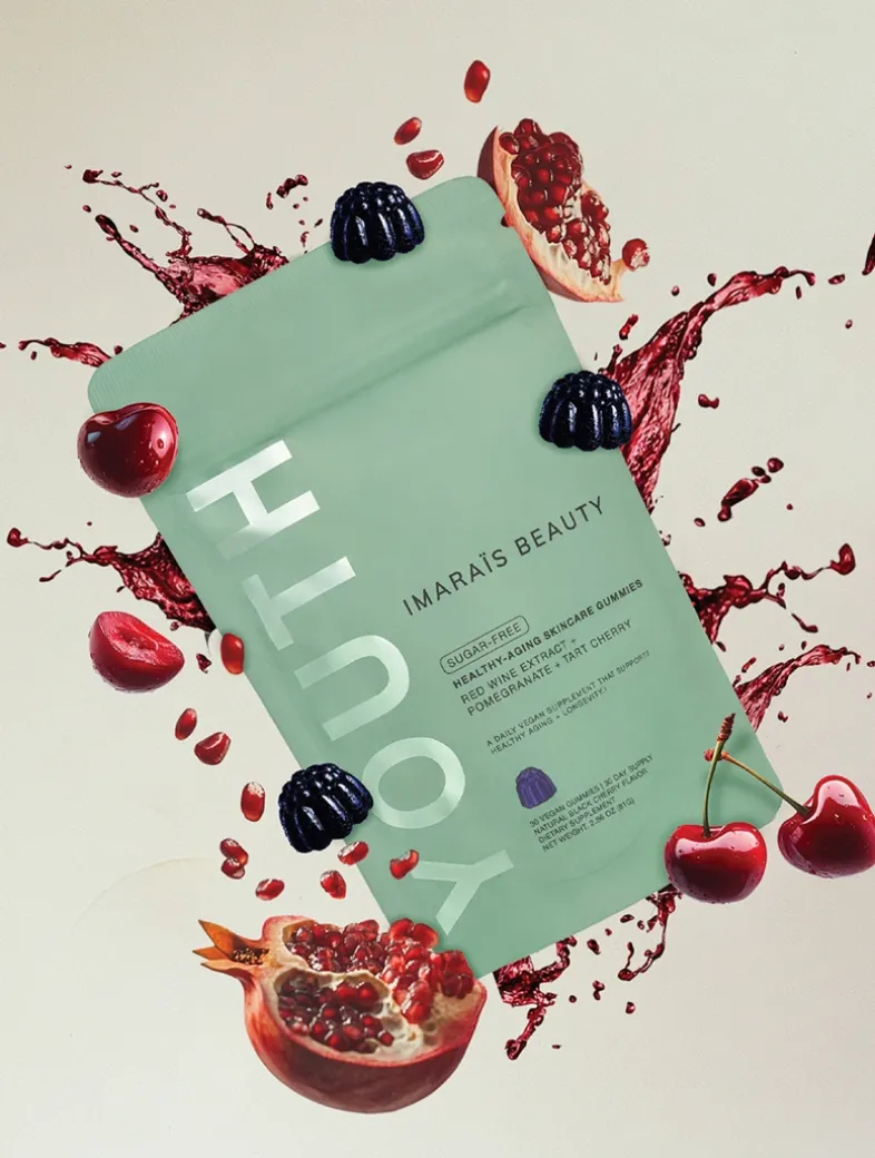 Youth is a plant-based skincare supplement for women and men aged 18-64. Supporting healthy aging, improving skin elasticity, and reducing wrinkles with clinically studied ingredients like red wine extract, pomegranate, and tart cherry.