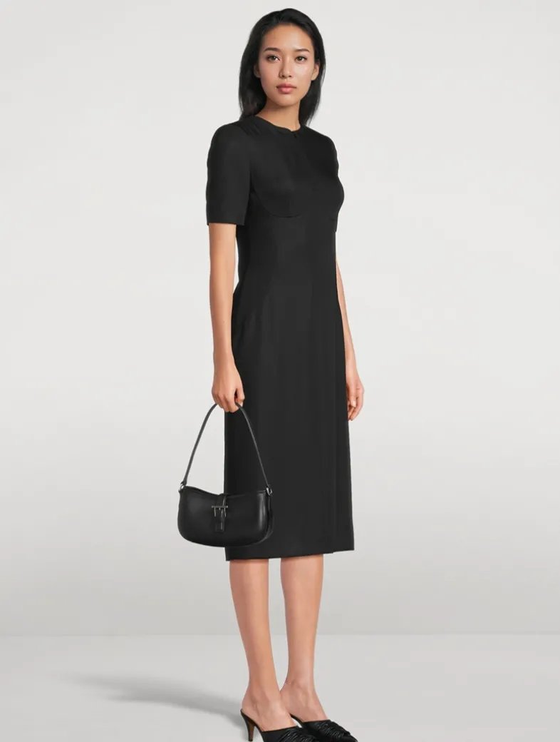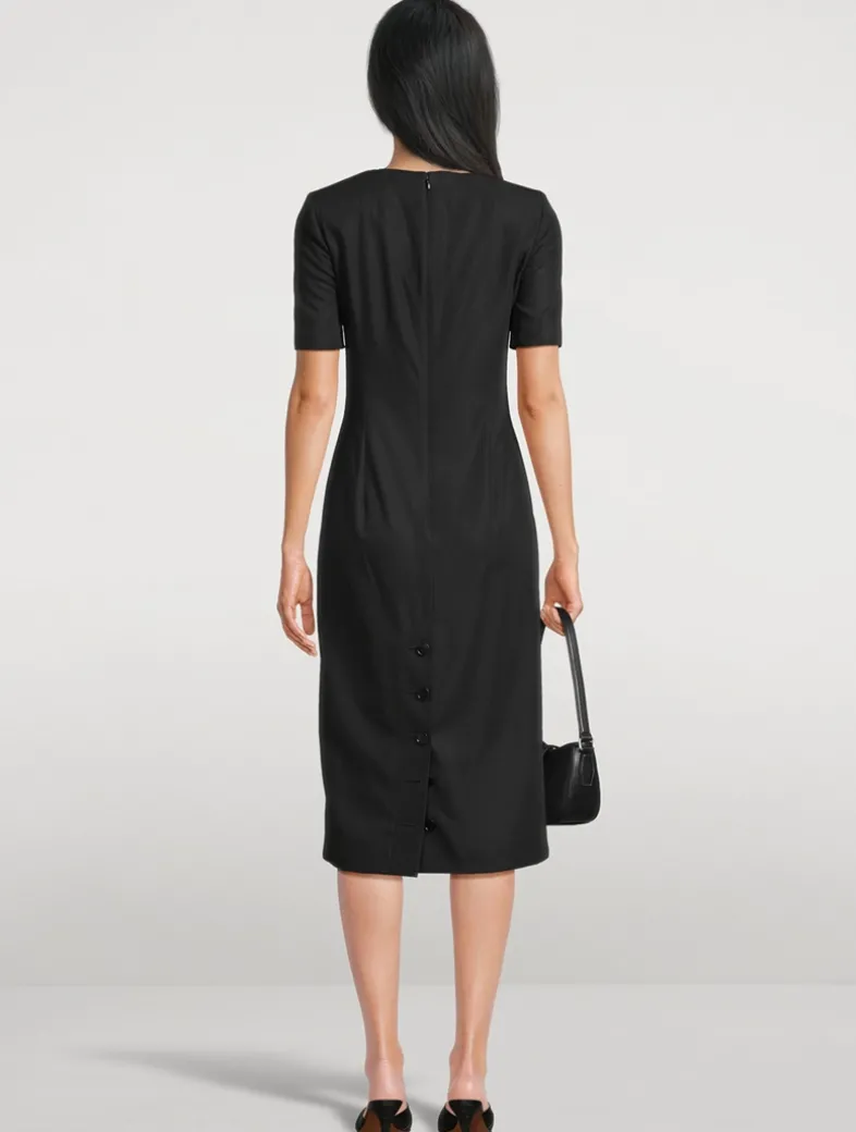 This curve-skimming pencil dress is crafted in Italy from wool-blend tailoring. Finished with a front and back zip fastening and back button detailing.
