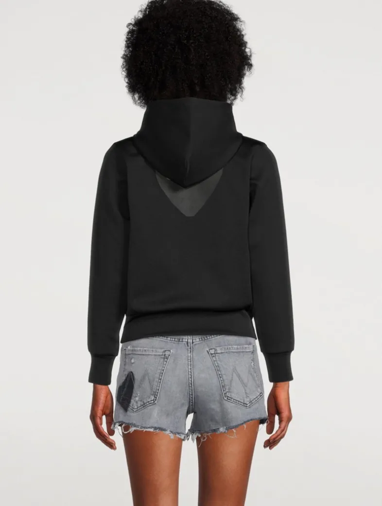 Hooded sweatshirt with front pockets and signature heart patch at chest.
